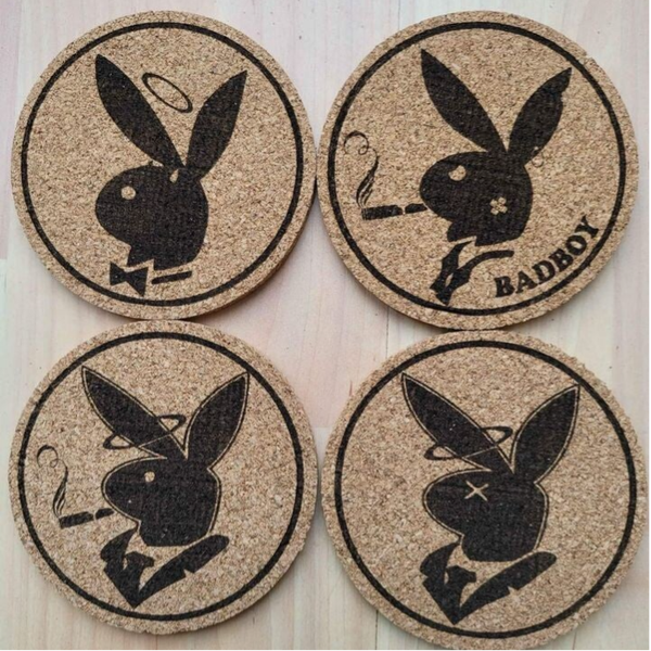 Set of 4 Cork Coaster laser designed